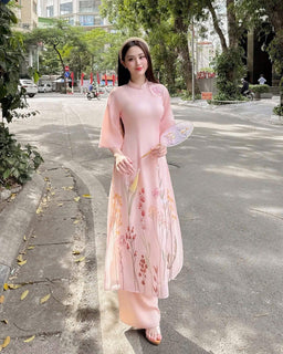 A22 – Set Áo Dài Cách Tân Hồng Pastel | Kèm Quần