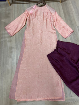 A35 – Set Áo Dài Tencel 4 Tà Hồng/Tím | Kèm Quần Tím