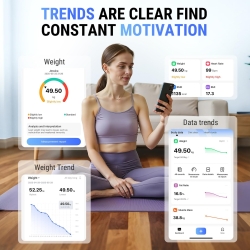 - 【Smart App Integration】 Body weight scales sync with the Unique Health app to automatically generated charts, Visually present changes in weekly/monthly data. You can manually log meals in the Unique Health app, whether shedding pounds or building muscle. Ideal for fitness enthusiasts, adjust fitness or nutrition plans using data-driven insights. (Apple Watch compatible)
