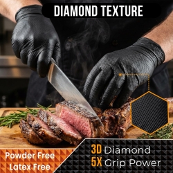 - TRUE-TO-SIZE FIT, NO SLIPPING – Our premium nitrile gloves feature a 3D diamond-textured surface designed to enhance friction, providing up to 60% stronger grip compared to standard thick nitrile gloves. This makes them ideal for precision tasks that require steady handling