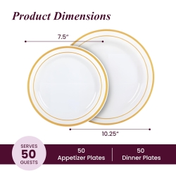 • Complete 100-Piece Serving Set: Includes 50 large 10″ disposable dinner plates and 50 smaller 7.5″ plates for appetizers, salads, or desserts, serving up to 50 guests with coordinated style