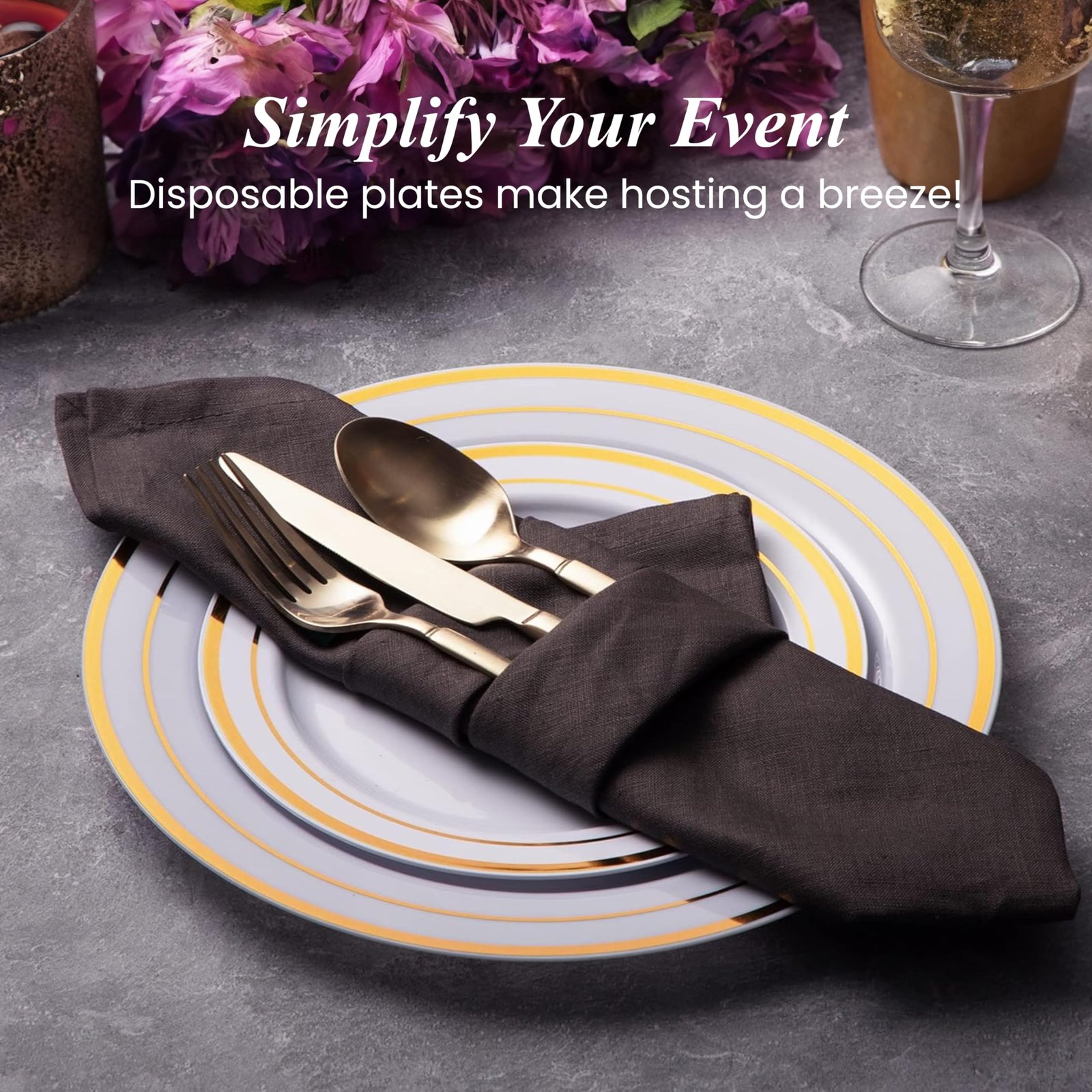 • Ideal for Any Occasion: These disposable dinner plates bring elegance to birthdays, holidays, or gatherings; their timeless look and practicality make them essential for both casual and formal events