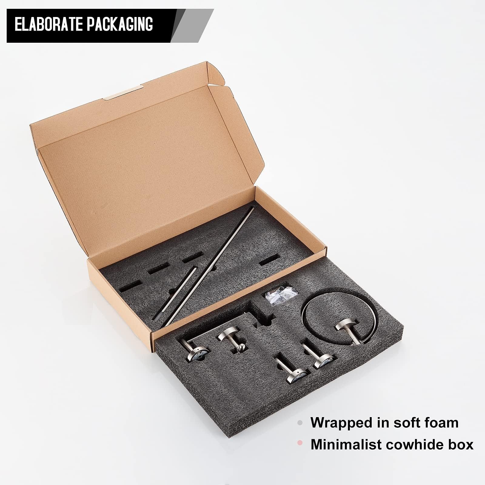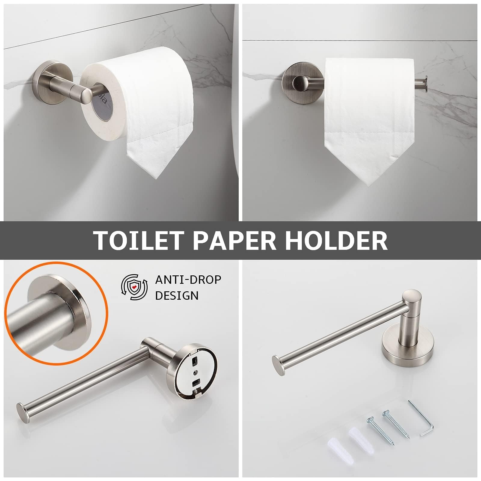 - Heavy Duty-Made of durable zinc alloy and adopt brushed nikcel surface treatment , let the towel rack set can pass 48 hours neutral salt spray test.