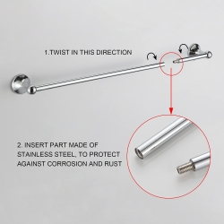 - Adjustable Towel Bar – Single towel bar with 18-inch rod and 6-inch rod, allows you to choose 18-inch towel bar or 24-inch towel bar according to your needs.