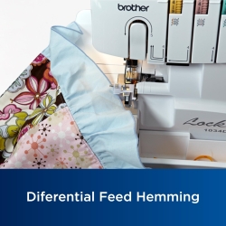 Details: The Brother 1034D serger features a 3/4 lay-in thread system with lower looper threader.Stitch options include 4 thread overlock 3 thread overlock narrow hem rolled hem and ribbon lock stitches.Additionally you can sew blind hem pin tuck and flat lock stitches by purchasing optional presser feet.The machine has a free arm/flat bed convertible sewing surface.The 1034D also offers a F.A.S.T. lower looper threading system for easy thread changes.The differential feed improves sewing results on stretch or thin fabrics to give you a perfect finish. Snap-on presser feet allow quick and easy changes to transition to each desired stitch. Warranty is voided outside the US.