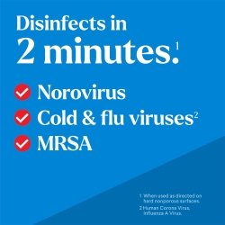 • DISINFECTS IN 2 MINUTES: Disinfects hard, nonporous surfaces against , the cause of , in 30 seconds and cleans better than a bucket and rag