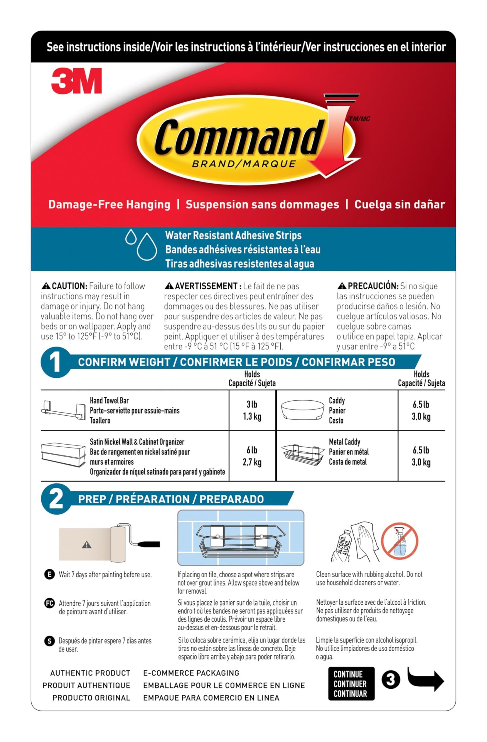 Details: The Command Bath Caddy allows you to keep your shower essentials organized. The caddy sticks to many surfaces, including glass, mirror, tile, fiberglass, wood and painted surfaces. It adheres firmly and comes off leaving no holes or sticky residue, providing a great alternative to unsightly, unreliable suction cups and damaging screws and nails.