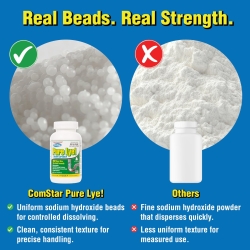 - THE SOAP MAKER’S FAVORITE: Crafters prefer ComStar Pure Lye for its unique bead shape that dissolves quickly and won’t clump or create static. Whether you are a beginner or a pro, these small beads make soap making faster, easier, and more consistent.