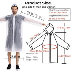 - *LIGHTWEIGHT COMPACT & REUSABLE: This transparent raincoat is lightweight, soft, and breathable, and it doesn’t have any weight when you wear it. It is not only quick-drying but also can be recycled for long periods of time. Durable, tear-resistant, waterproof, and breathable. Foldable in small size, keep it in the backpack/ house/ office or car for an emergency.