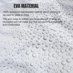 - *SAFE & HIGH-QUALITY RAINCOAT: Made of 100% EVA, an environmentally friendly material, the rain poncho is non-toxic, no smell, and is harmless. Extremely waterproof and lightweight, the long sleeves and big drawstring hood design will keep your arms, head, and neck dry.