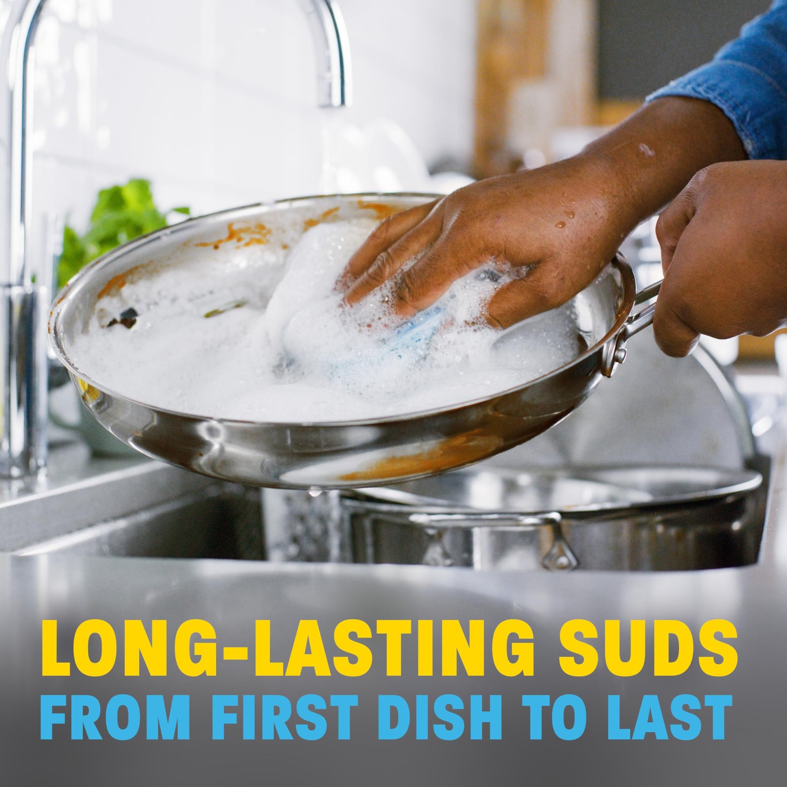 - TACKLE THE WHOLE SINK: PowerSuds dishwashing liquid cleans without any dilution. Pots & pans, baking sheets, glassware, and everything else