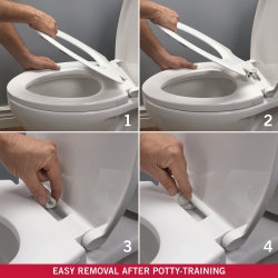 Details: Elevate your family’s bathroom experience with the Delta Faucet Sanborne elongated potty training toilet seat. This innovative seat is a game-changer for households with little ones, offering a convenient, comfortable toilet seat that caters to both adults and children. The potty-training-friendly design features a child-size ring that nests within the lid, easily lifting away when not in use and providing a secure, confidence-boosting setup for toddlers learning to use the toilet.