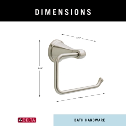 Details: Maximize space and keep towels and robes in place with the Delta Becker Bath Accessories collection, without sacrificing attractiveness. This design pairs effortlessly with Casual and Contemporary décor. The European style toilet paper holder allows for easy roll change outs.