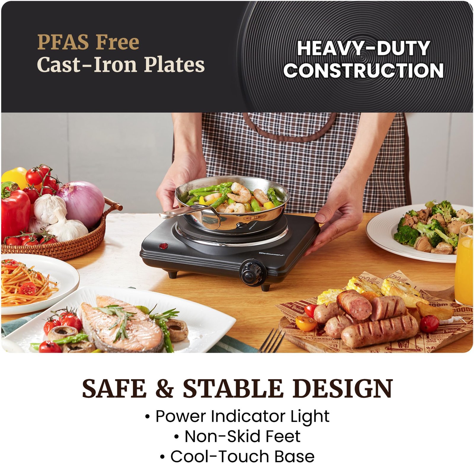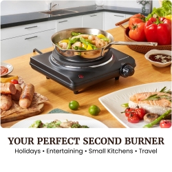 Details: Cook anywhere with confidence using the Elite Gourmet Countertop Electric Burner.