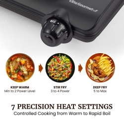- 7 HEAT LEVELS FOR PRECISE C7 PRECISION HEAT SETTINGS: From Keep Warm to Rapid Boil, easily adjust the temperature for simmering soups, stir-frying vegetables, frying eggs, or heating sauces. Maintains consistent heat without overheating small spaces.