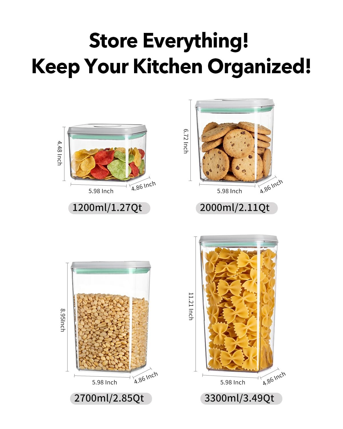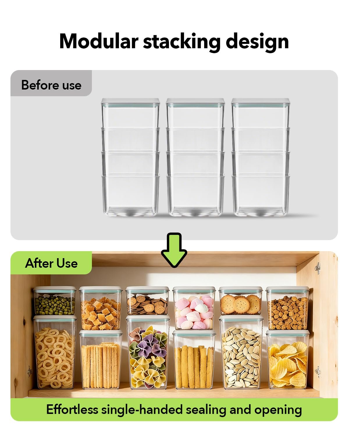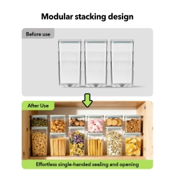 - 【Patented One-Touch Lid for Efficient Organization】Features our Patented press design for instant sealing and opening, providing convenience during busy cooking sessions. This Airtight Food Storage Container system is the ideal solution for achieving Efficient Kitchen Pantry Organization.