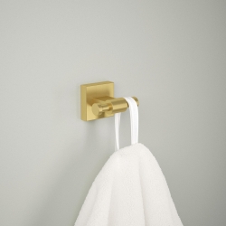 - BATH HARDWARE: Modern gold double towel hook for the bathroom