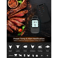 - Perfectly Cooked Every Time: Browse USDA-recommended temperatures for beef, lamb, chicken, fish, turkey, and pork on the Govee Home app. Keep your grilling efficient and avoid overcooking or burning your food.
