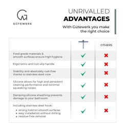 - MINIMALIST TIMELESS DESIGN – The GÜTEWERK glass squeegee is crafted with a matte white finish that impresses with its elegant timeless and smart design. In addition, the chrome-colored stainless-steel hook integrates well with any modern bathroom.