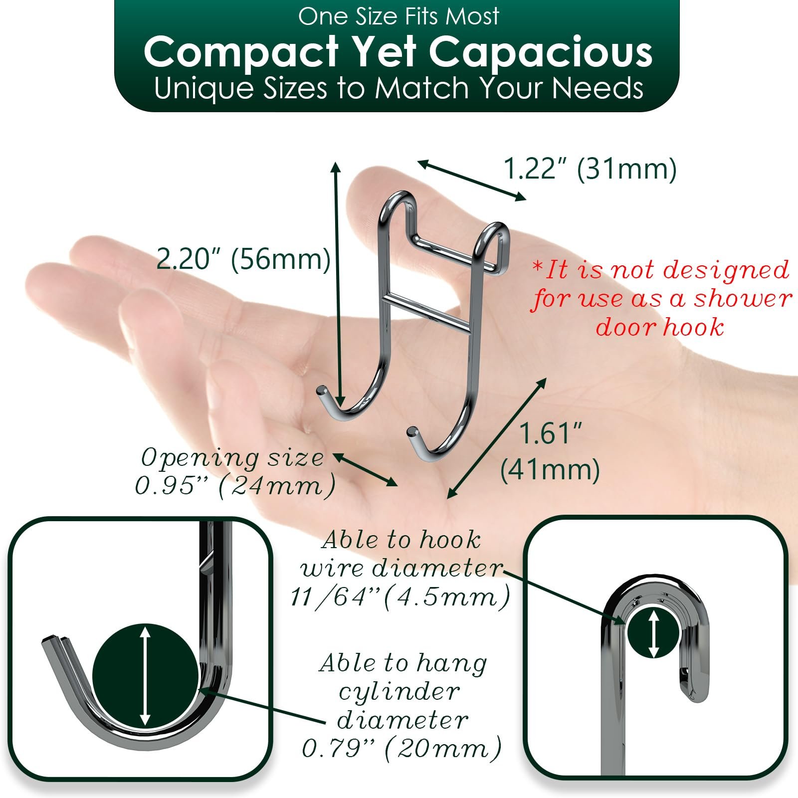 - [ PRODUCT SIZE AND QUANTITY ] H x W x D – (2 13/64″ x 1 7/32″ x 1 39/64″) per piece and 2 pack * removable shower caddy hook (NOTE: These hooks are meant to hook to a basket)