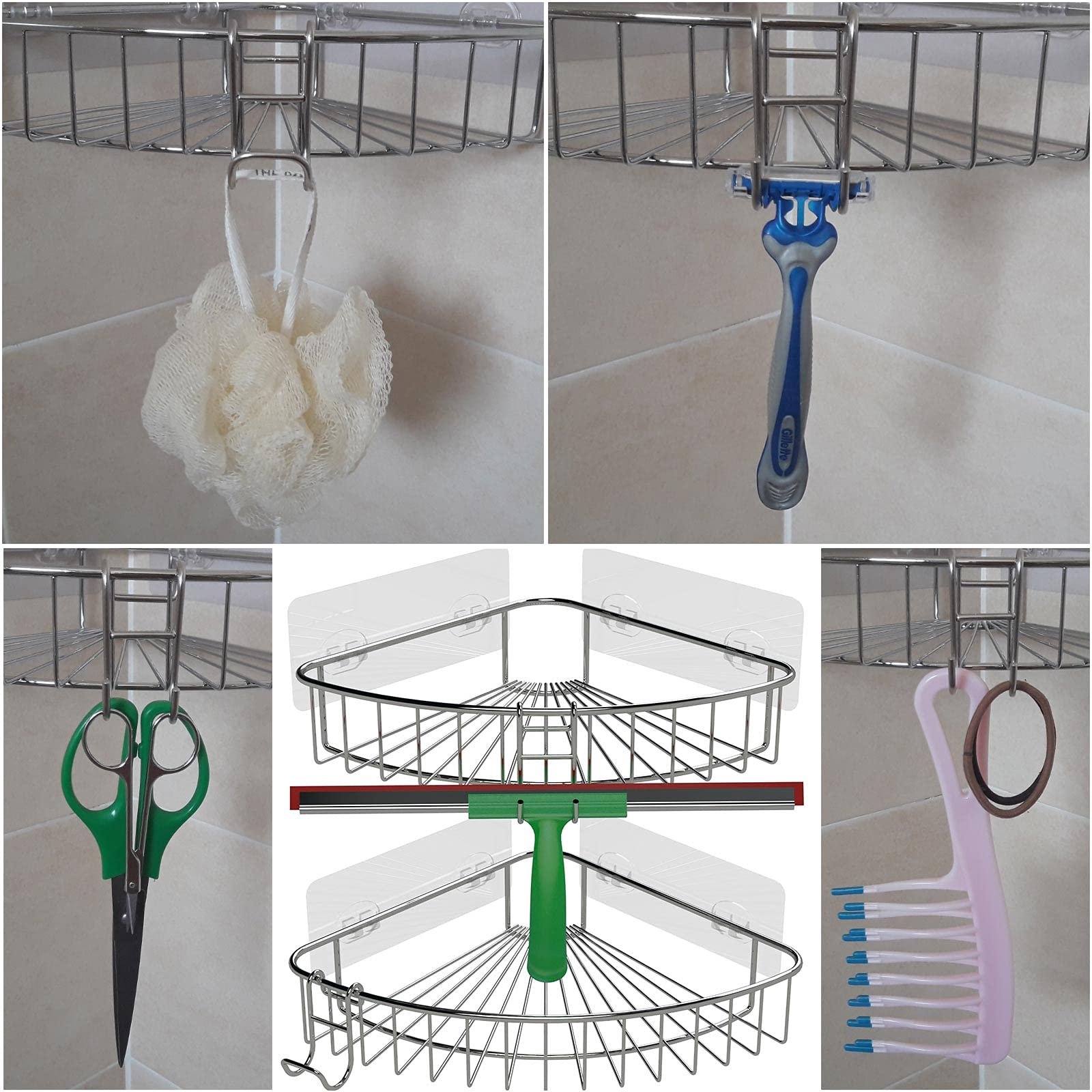 - [ WORK WELL & LOOK GREAT ] Work great as a razor hanger for shower, shower loofah hanger, body brush holder, bath robe, towel, squeegee shower bath, shower sponge hanger, shower brush hook, bath scrub, luffa and shaver hanger.