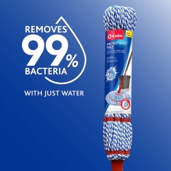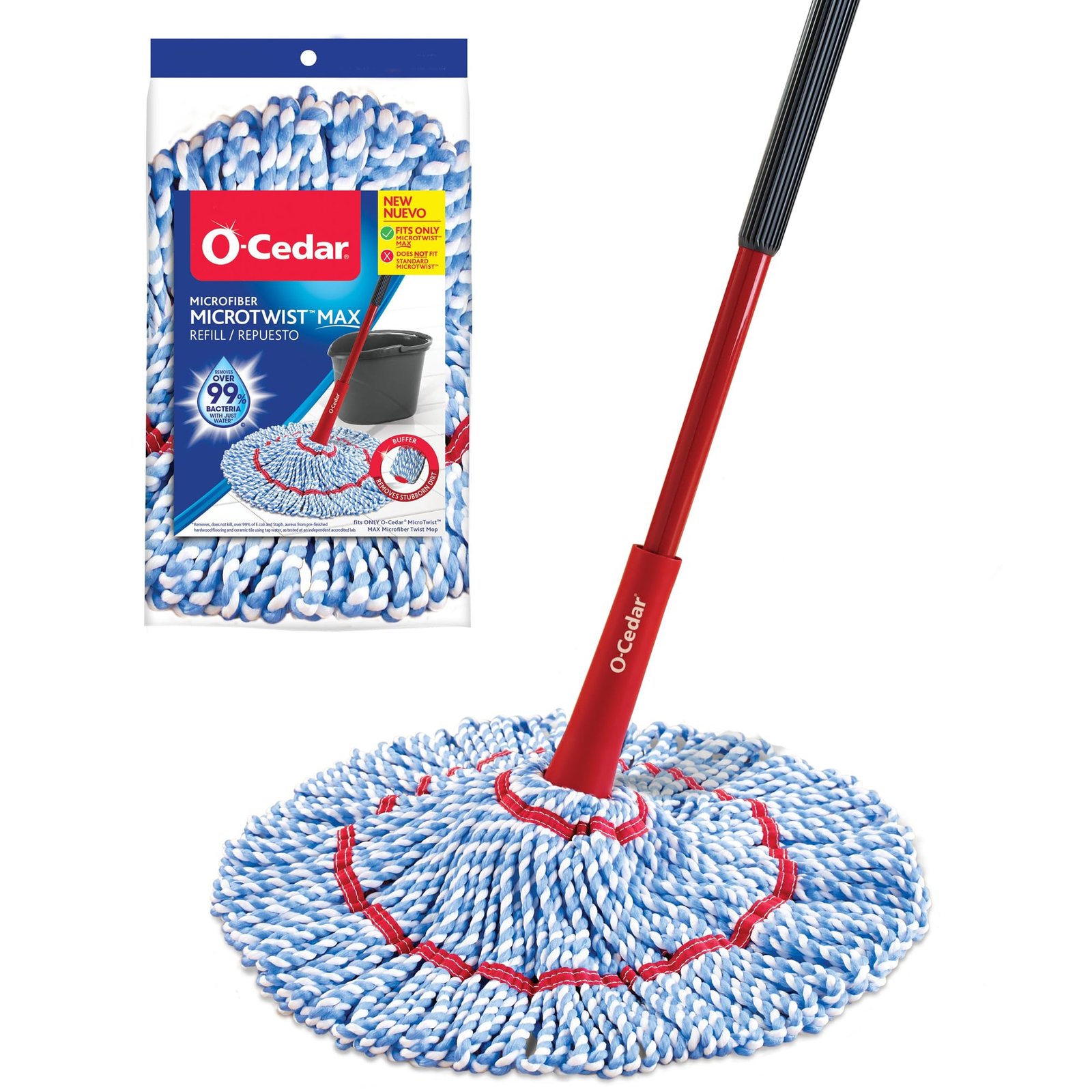 Details: Experience a new level of convenience and efficiency with the O-Cedar MicroTwist MAX Microfiber Twist Mop. Designed with a large mop head, this mop cleans faster while keeping your hands dry. For added value, this bundle includes an extra MicroTwist Refill. The integrated twist-handle allows for controlled wringing, ensuring clean floors with minimal effort. Simply wring the excess water into a bucket. With absorbent microfiber strings for superior spill and particle pickup, and a buffering pad for stubborn dirt, the MicroTwist MAX Mop delivers exceptional cleaning power. Plus, its reusable and machine washable microfiber head removes over 99% of bacteria with just water.* *Removes, does not kill, over 99% of E. coli and Staph. aureus from pre-finished hardwood flooring and ceramic tiling using tap water, as tested at an independent accredited lab.