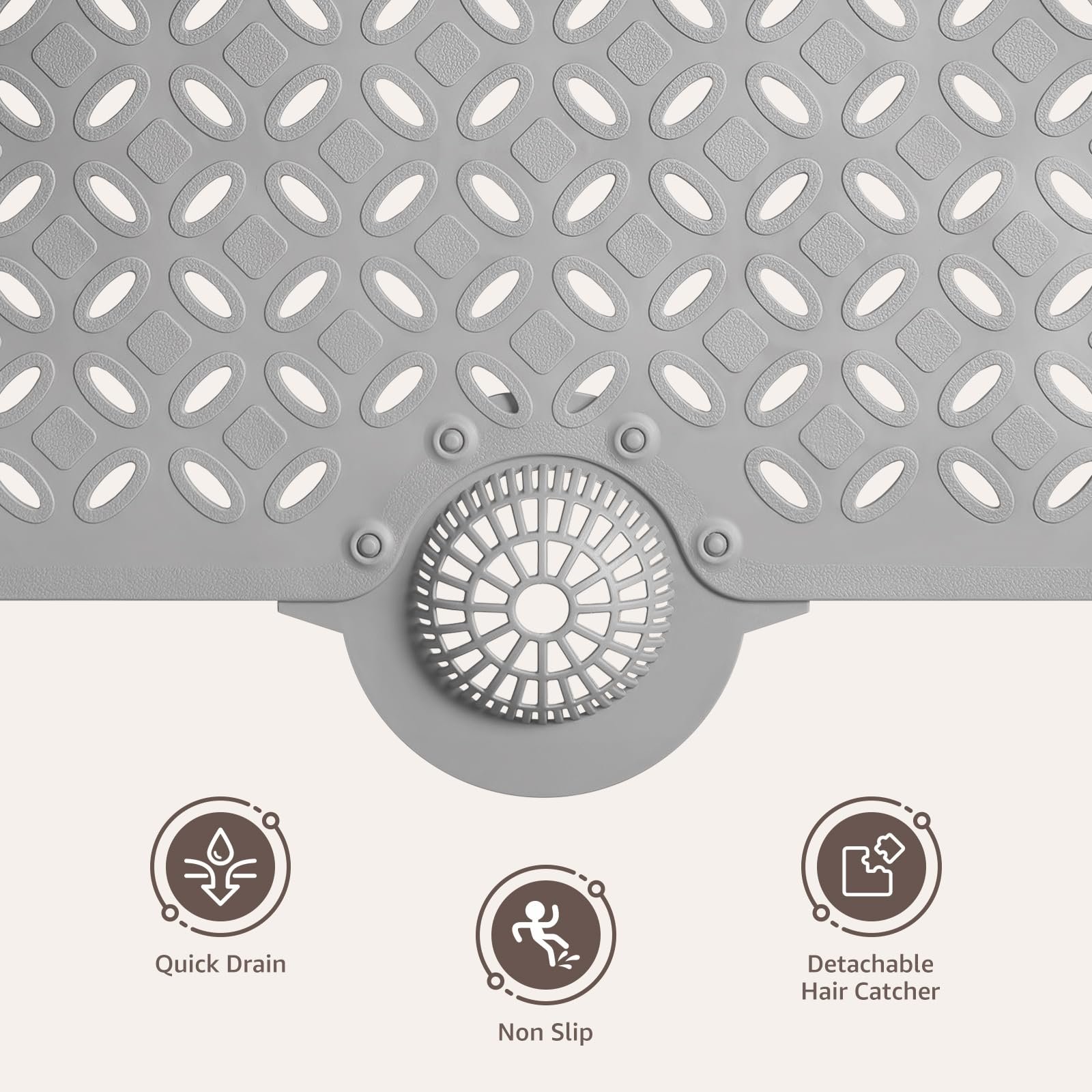 - DETACHABLE HAIR CATCHER: The hair catcher comes automatically with a way to block hair from going down the drain, it can help you catch the falling hair. Detachable design more attractive and functional. OTHWAY bath mat providing security also focuses on the user experience. When you receive it, the hair catcher may be deformed, please give it some time to its original shape