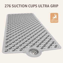 - ULTRA GRIP: The non slip shower mat is built in 276 powerful suction cups on the bottom, which can firmly attach to the floor, it provides a nice grip and stays in place, it helps you feel safe while showering. This bath mat is only suitable for completely smooth, non-textured tile surfaces