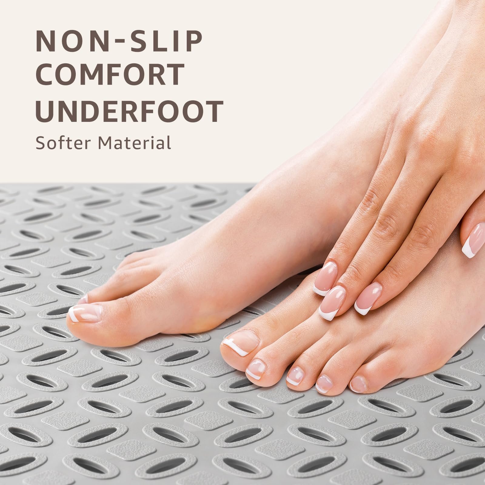 - BIG DRAIN HOLES QUICK DRAIN: This anti slip shower mat has 604 oval drain holes, 0.7″L – 0.24″W big drainage holes for faster and easier water drainage, effectively keeping water from accumulating