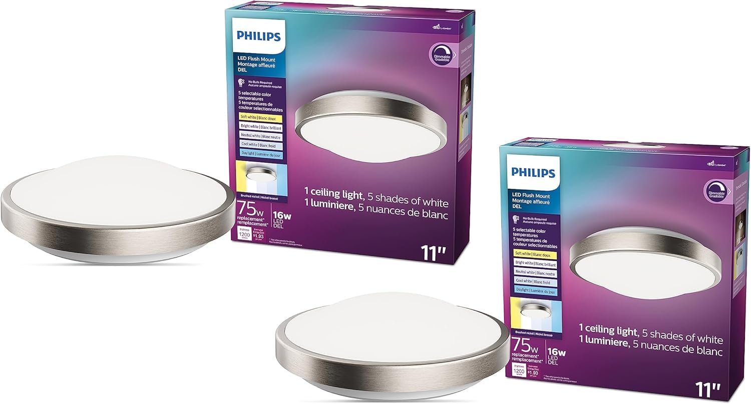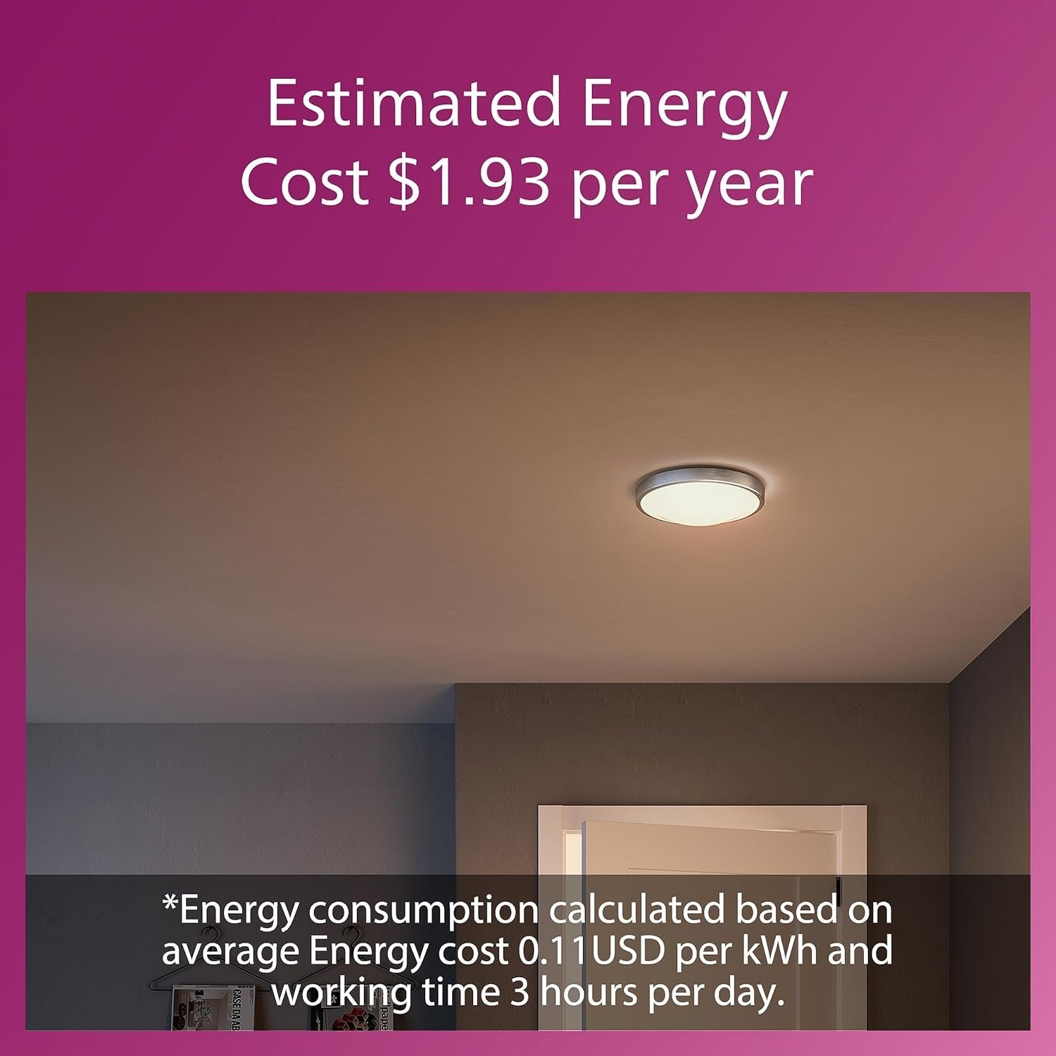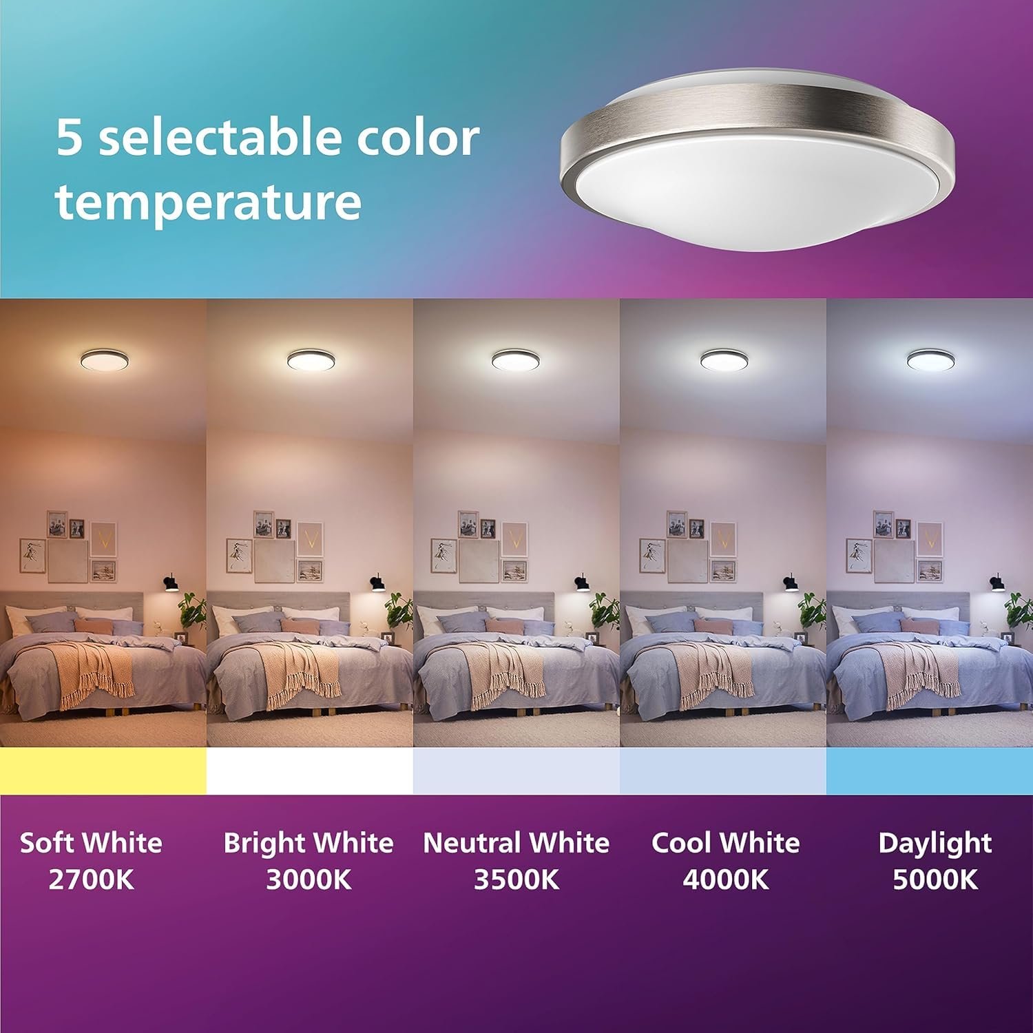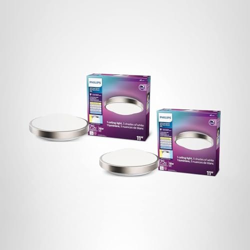 Details: The Philips 11″ LED Flush Mount is an integrated high quality fixture designed to provide illumination uniformity in any room of your home. Easily switch to your preferred shade of light directly on the fixture choose from 5 color temperatures ranging from soft (2700K) to daylight (5000k) prior to install. The integrated light is maintenance free and smooth dimming functionality contains no flicker or hum, creating the ideal ambiance. Benefit from the extensive EyeComfort tested criteria, a standard Philips developed to ensure we design light that’s comfortable for your eyes.