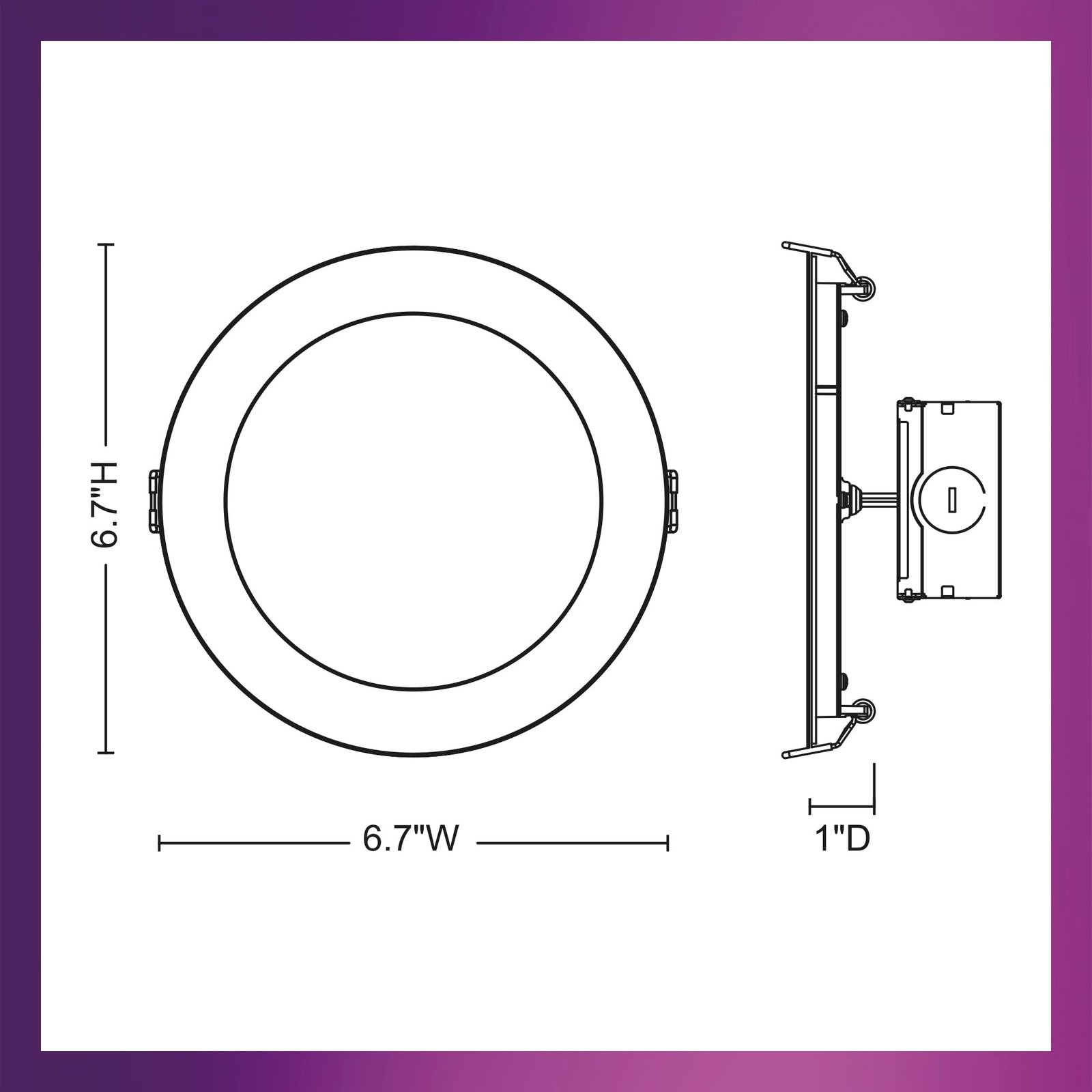 Details: The Philips 6″ Slim Canless downlight is an ultra-thin LED with a repositionable junction box and driver ideal for new construction and remodel applications. Less than just 1/2″ thick, this slim design downlight easily fits in most spaces with no recessed can required for installation. Easily switch to your preferred shade of light directly on the fixture, choose from 5 color temperatures ranging from soft (2700K) to daylight (5000k) prior to install. Benefit from the extensive EyeComfort tested criteria, a standard Philips developed to ensure we design light that’s comfortable for your eyes.