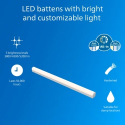 • BUILT TO LAST: PHILIPS is your trusted brand for quality, as every key component is tested for reliability and performance; this robust, hardwired ceiling batten has a 50,000-hour lifetime