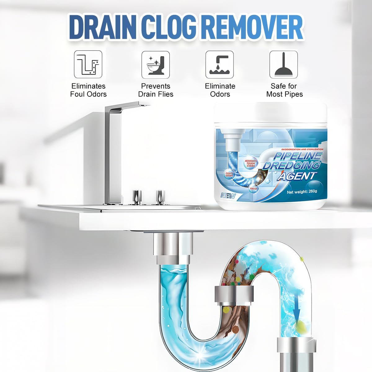 - Powerful Drain Unclogging : Our pipeline dredging agent works swiftly to tackle even the toughest blockages. It provides a highly effective solution to restore flow in your pipes by breaking down tough clogs. Whether it’s grease, soap, or hair, this pipeline drain cleaner efficiently removes blockages.
