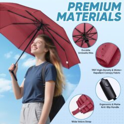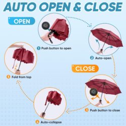 - One-Button Auto Open and Close: This compact travel umbrella opens and closes automatically, making it ideal for quick access in the rain with a single press; The ergonomic anti-slip handle offers a better grip