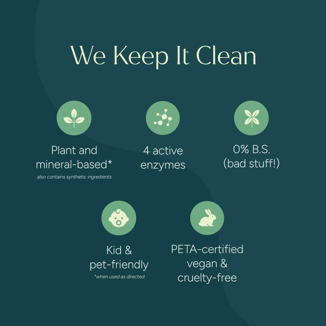 - No Overly Aggressive Chemicals: No phosphates, sulfates, petrochemicals, animal by-products, chlorine, perfumes, gluten, tree nut-based ingredients, dyes, allergens