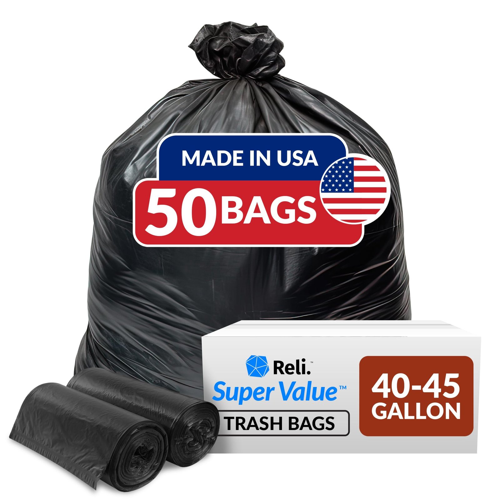 - American Crafted for Heavy Loads: These 40 to 45 gallon garbage bags are your go to for demanding disposal needs. 50 pack ensures you’re always prepared.