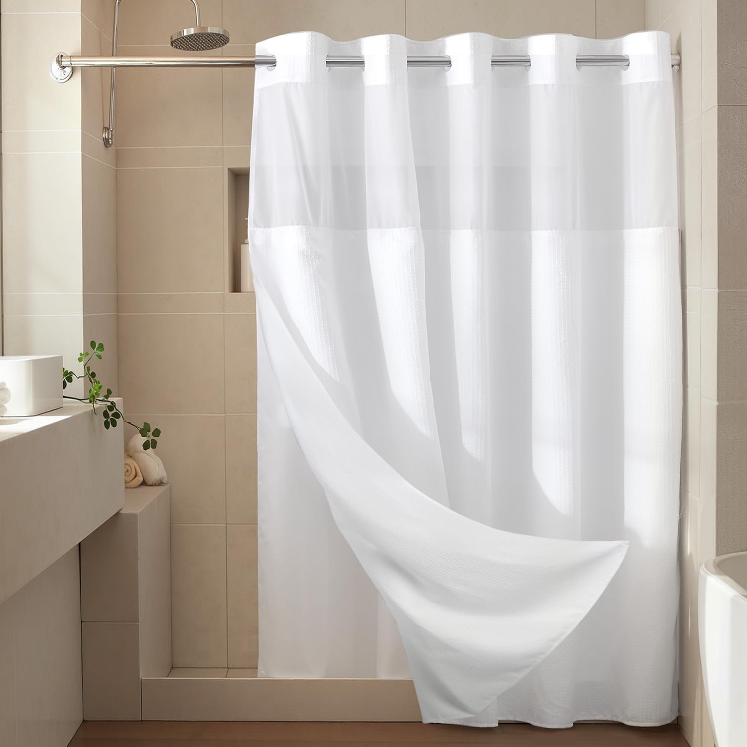 - Package Included: 1 Shower curtain and 1 fabric snap-on replacement Liner