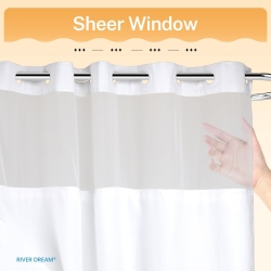 - Hotel Quality: The shower curtain and liner are made with high quality Fabric, heavy weight to keep it in place. Water repellent treatment can repel the water inside tub