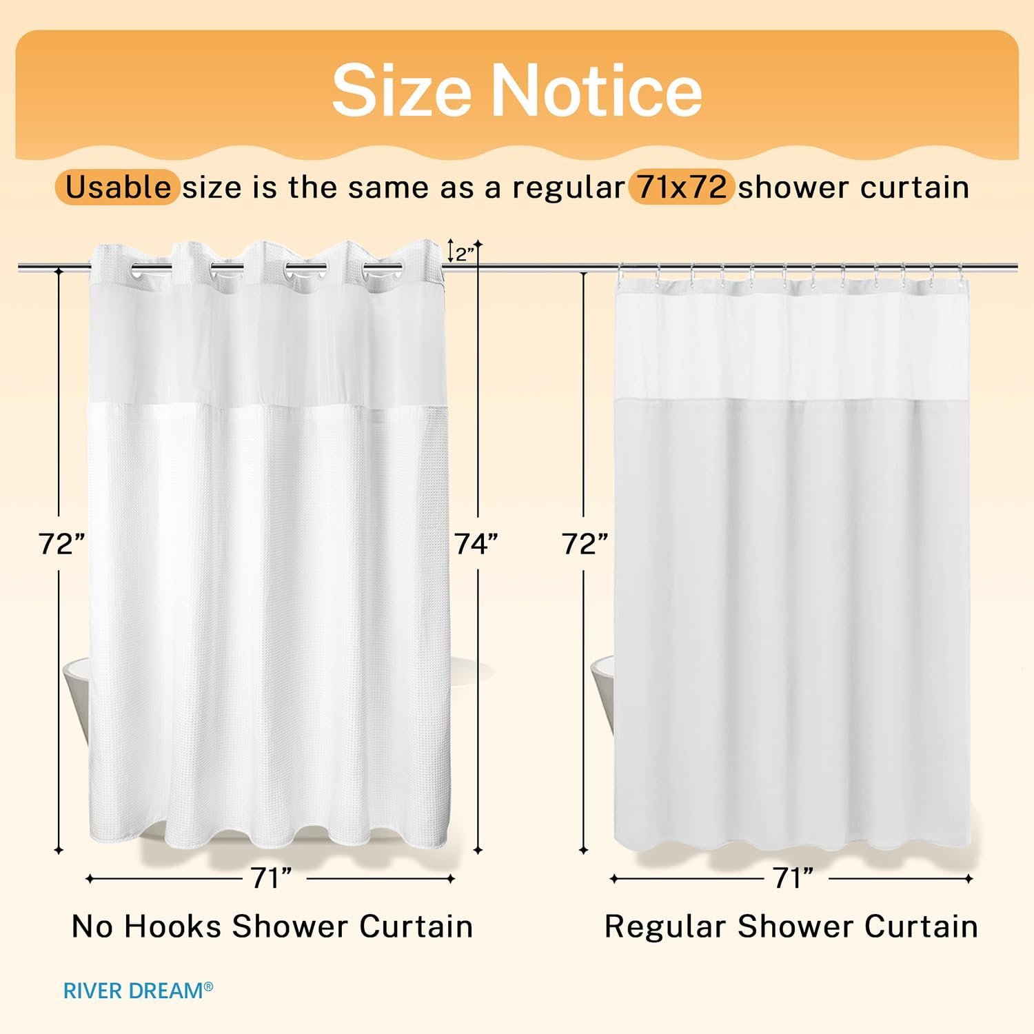 - Size Notice: The usable size is the same as a regular 71×72 shower curtain,snap in liner is 70″ x 54″ (WxL)