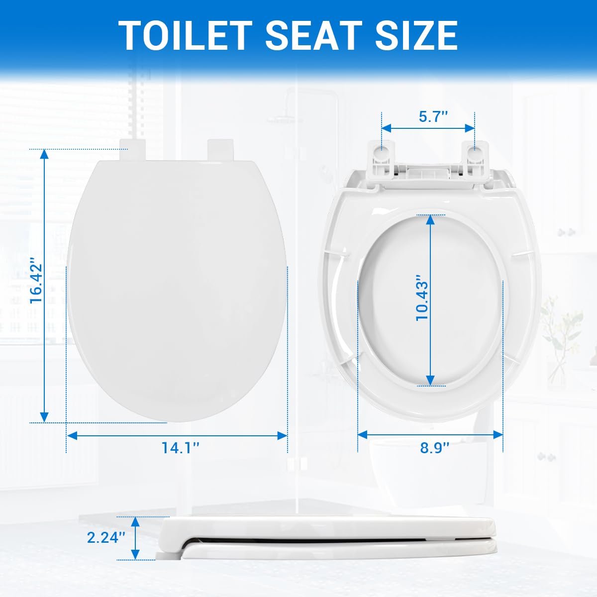 - 【Heavy-Duty Strength – Supports up to 400】lbsCrafted with durable materials, this elongated toilet seat supports up to 400 pounds, making it ideal for adults and seniors. The reinforced plastic toilet seat construction ensures long-lasting strength and stability for standard elongated toilets.