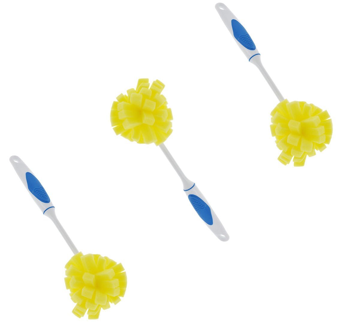- These 9″ plastic scrub sponges have soft-grip handles to keep hands comfortable while the soft sponge ball makes washing dishes a breeze.