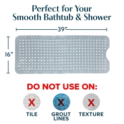 • Oversized Full-Tub Coverage: Measuring 39”L x 16”W, this extra-long mat covers 30% more surface area than standard bath mats, providing enhanced safety for seniors, children, and babies during baths or showers.