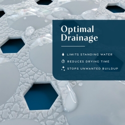 • Superior Drainage: Hundreds of large hexagonal drain holes prevent water from pooling, reducing the risk of standing water and allowing your mat to dry faster between uses and helping prevent buildup.