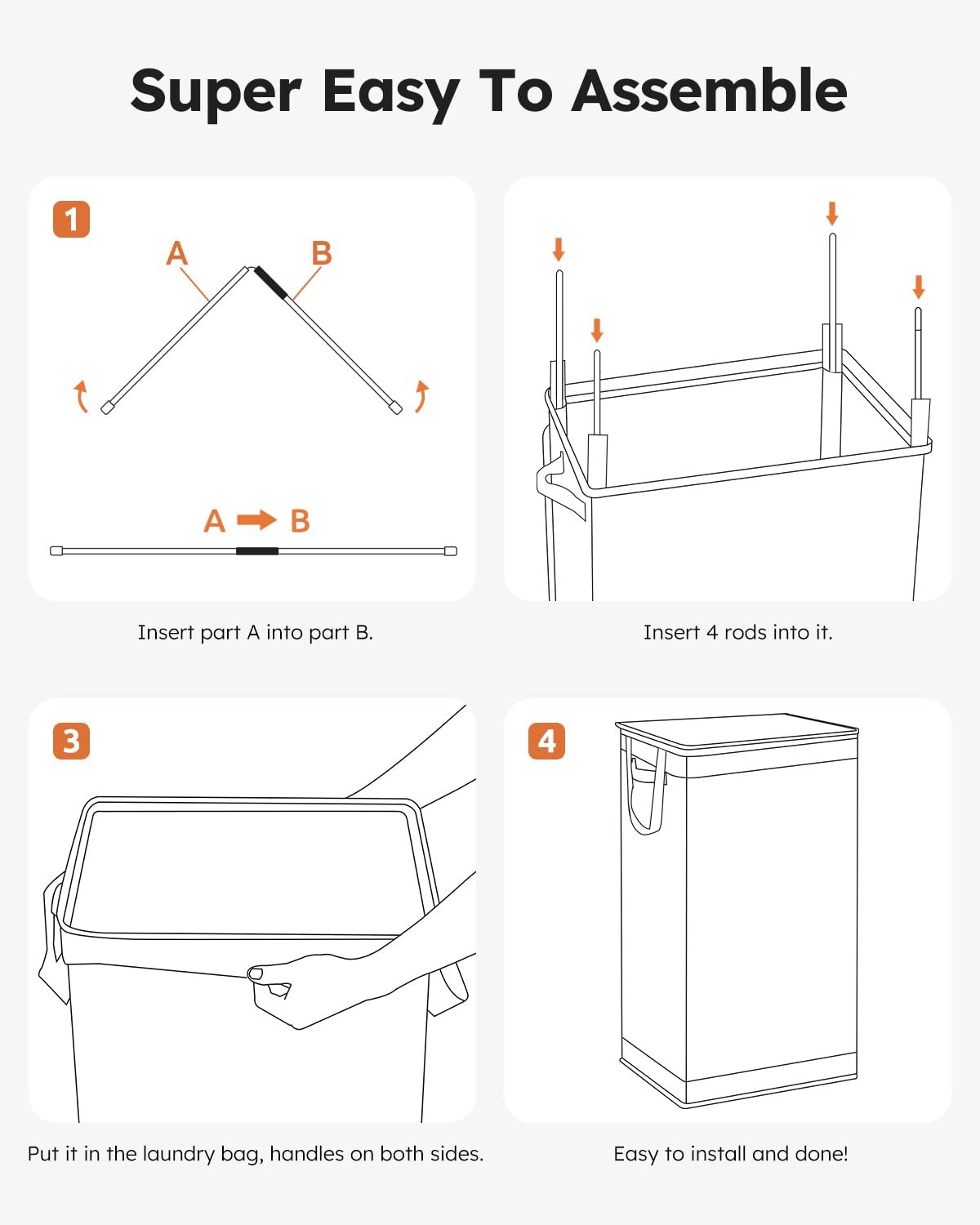 - 【Easy to Install and Foldable】This clothes basket with detailed installation instructions, just insert 4 support rods into the fixed tube, you can complete the collapsible laundry basket installation in 1 minute, which is simple and convenient. In addition, it can be folded up and stored in a cabinet when idle, reducing the space occupation.