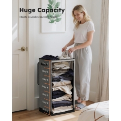 - 【Sturdy Structureand Not Deformed】 The 4 insert rods of the hamper is thicker and stronger, and the MDF panel is added at the bottom, a metal frame is embedded in the top to form a solid structure of the clothes basket. It will not collapse or deform after long-term use and remains rigid even when the hamper basket is filled.