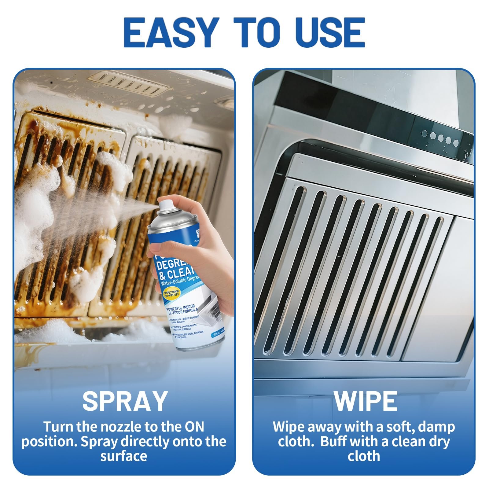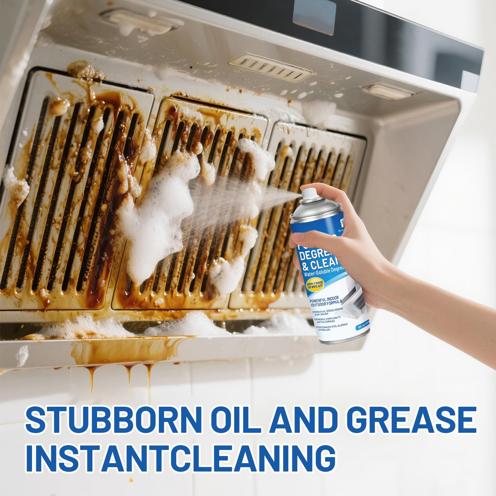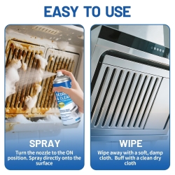 - MELTS TOUGH GREASE IN SECONDS:Spray directly on baked-on oven grease, stovetop splatter, or grill grime. Our thickened formula clings to vertical surfaces, breaking down fats and oils without scrubbing. Works on stainless steel, ceramic, glass, and sealed stone.