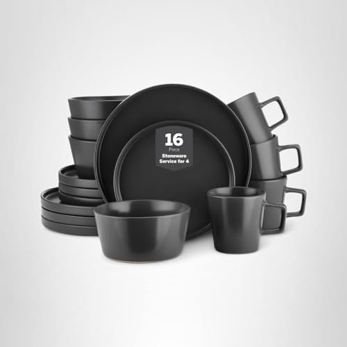 - SERVICE FOR 4 – Total of 16 pieces including 4 dinner plates (10.25″), 4 salad plates (7.5″), 4 deep bowls (6.3″), and 4 ergonomic mugs (11.5 oz), making it the perfect set to service 4 people