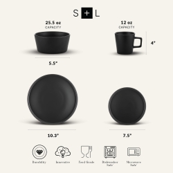 Details: Bring bold elegance to your dining table with the Stone Lain Celina 16 Piece Stoneware Dinnerware Set in Black Matte. This eye-catching collection features a soft lipped rim and a rich matte glaze, blending modern sophistication with rustic flair. Designed for intimate dinners or casual hosting, the set includes 4 dinner plates, 4 salad plates, 4 deep bowls, and 4 mugs with comfortable handles. Whether you’re sipping coffee or serving a multi-course meal, Celina’s smooth texture and minimalist form enhance every experience. Made from thick, durable stoneware, this dinnerware resists chips and handles daily use with ease. All pieces are microwave and dishwasher safe, combining style and practicality for modern living. Celina is the ideal mix of fashion and function—perfect for first apartments, wedding gifts, or simply upgrading your everyday meals. With Stone Lain, every setting becomes a statement.