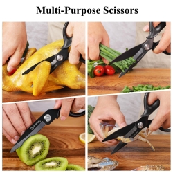 - Kitchen Scissors All Purpose – The meat scissors can effortlessly tackle any challenge like cutting poultry, fish, and herbs. Each pair of meat cutting scissors comes with an elegant portable bag and packaging box, making for an ideal gift for Fathers’ day and Mothers’ day, birthday and housewarming.