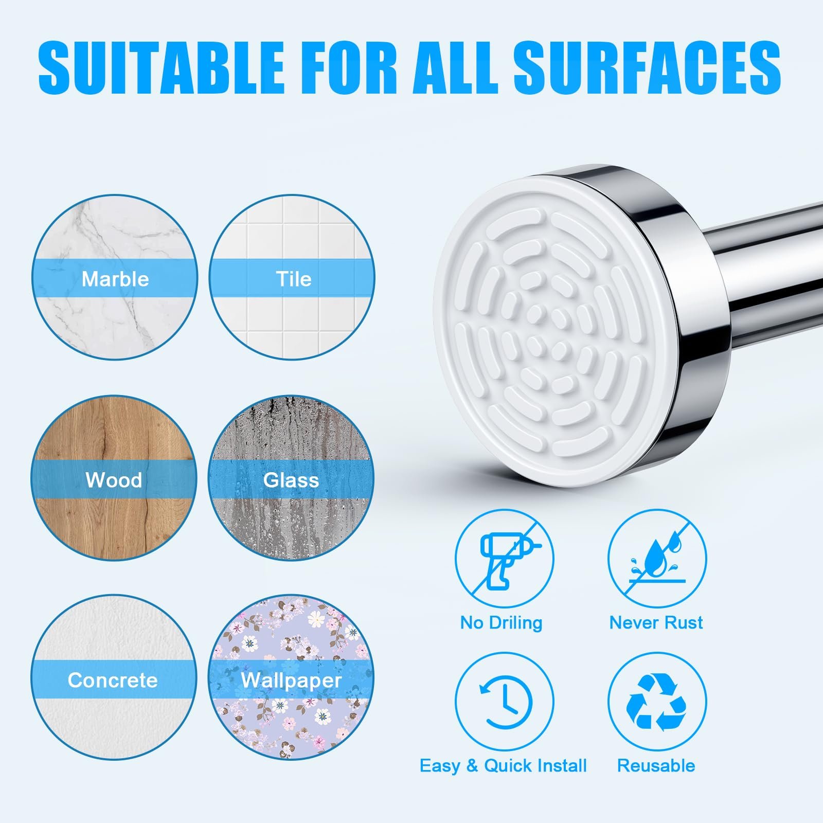 - 【Superior Material】-Made from premium stainless steel, non-slip, no drilling, no Rust, never collapse, easy to clean, no need to spray before use.